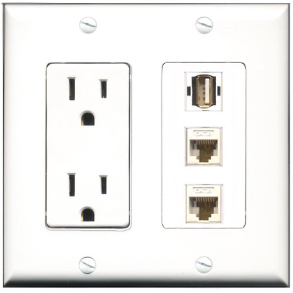 Amazon Com Riteav 15 Amp Power Outlet 2 Port Cat6 Ethernet White Decorative Wall Plate Electronics